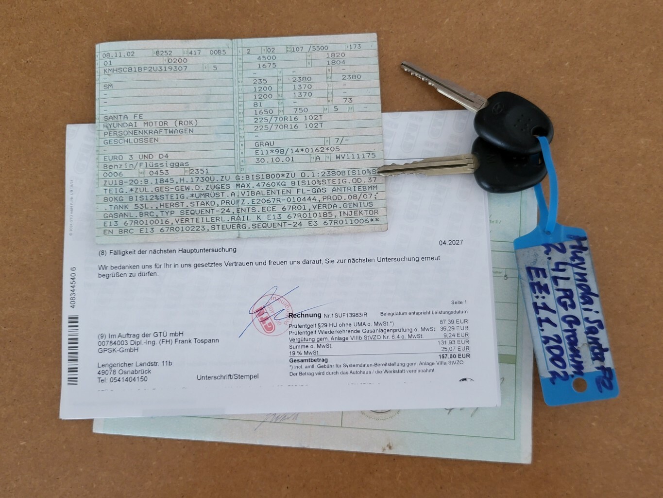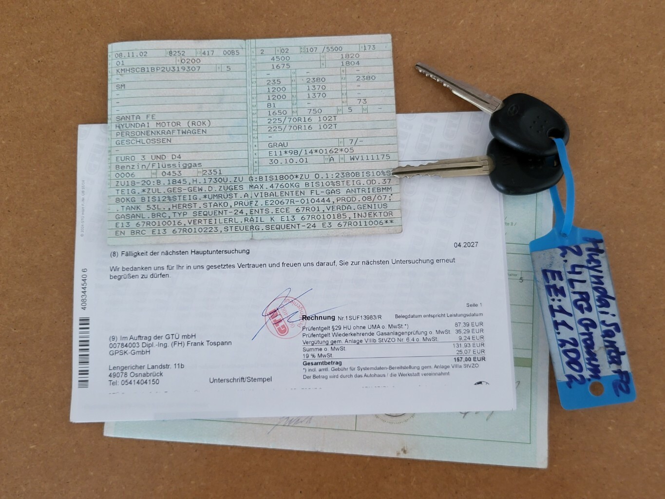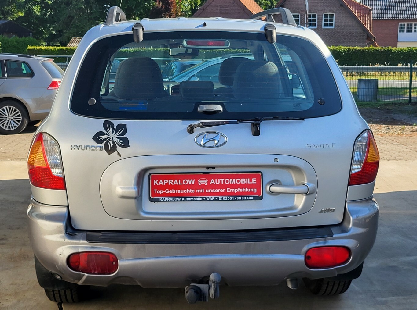 - Hyundai Santa Fe 2.4L GLS Benzin/ LPG Autogas 4x4 4WD TÜV/ AU bis 04.2027 5 Vorbesitzer (drei davon in der Familie) diverse Verschleißteile vor kurzem Erneuert: Zahnriemensatz mit Wasserpumpe Thermostat und Keilrippenriemen, Inspektion mit Allen Filtern inkl. Ölwechsel und Zündkerzen mit Ventildeckeldichtung Neu, Stoßdämpfer/ Federbeine Vo. Achse Erneuert, eine Servolenkung Leitung + Lenkgetriebe mit Spurstangenköpfen Erneuert Achsvermessung Neu, Feststellbremsen mit Seilen Bremsscheiben und Bremsbeläge Hi. Achse von ATE Neu, 16 Zoll Alufelgen mit Neuen Allwetterreifen (mit Alpina Zeichen), Klimakompressor mit Kältemittelfüllung Neu Motor/ Getriebe Laufen gut sowie LPG Autogasanlage funktioniert einwandfrei Anhängerkupplung mit 1650kg Anhängerlast Optisch diverse kleine Kratzer