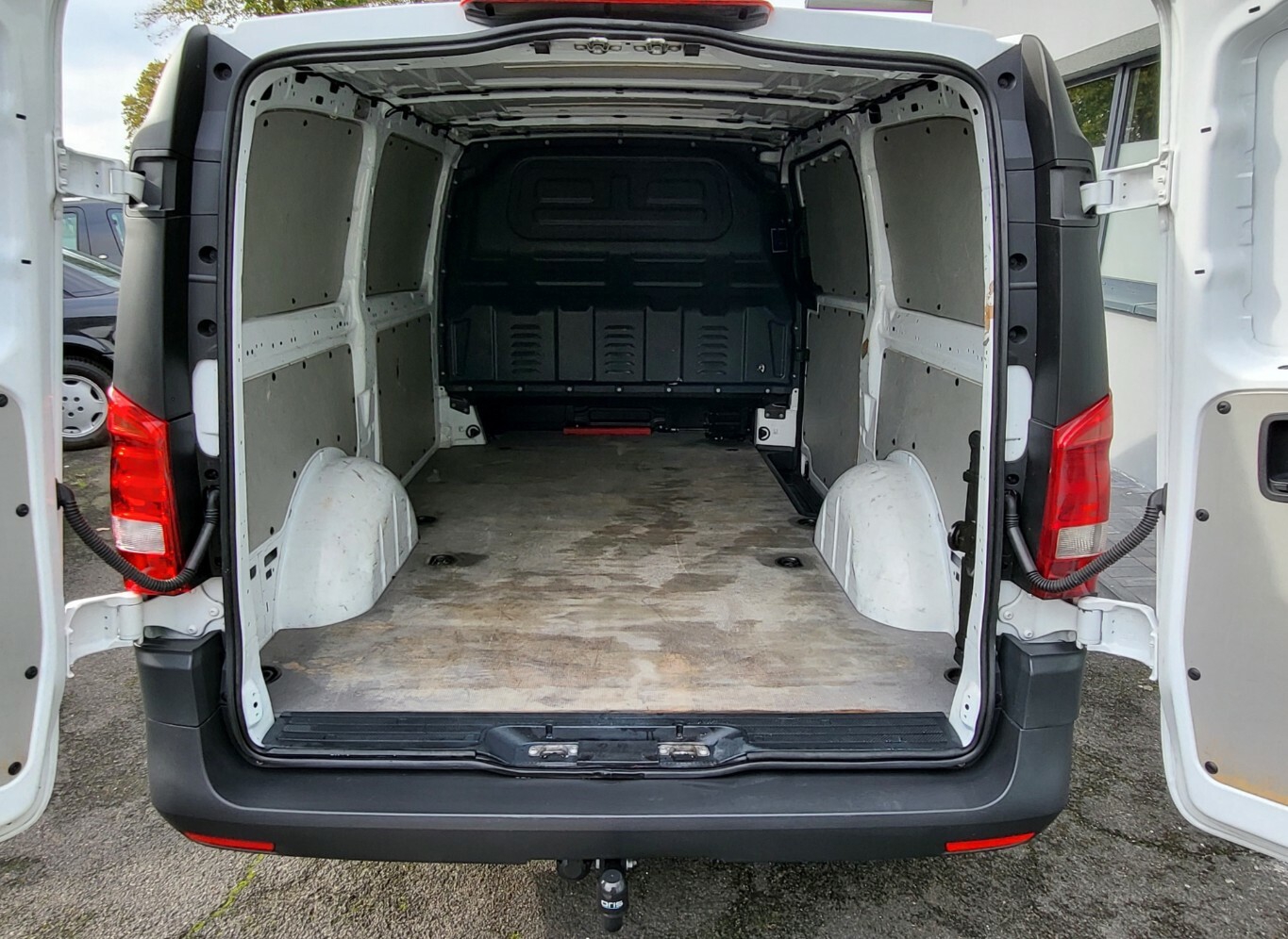- Heckflügeltüren ohne Verglasung (Öffnungswinkel 180 Grad) Holzfussboden im Laderaum Laderaumleuchte LED Laderaumtrennwand durchgehend