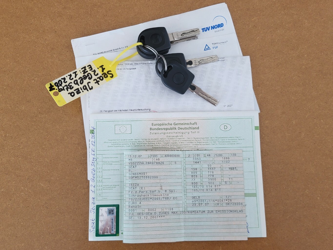 - Vier Schlüssel zwei für die Türen und zwei für Zündschloss